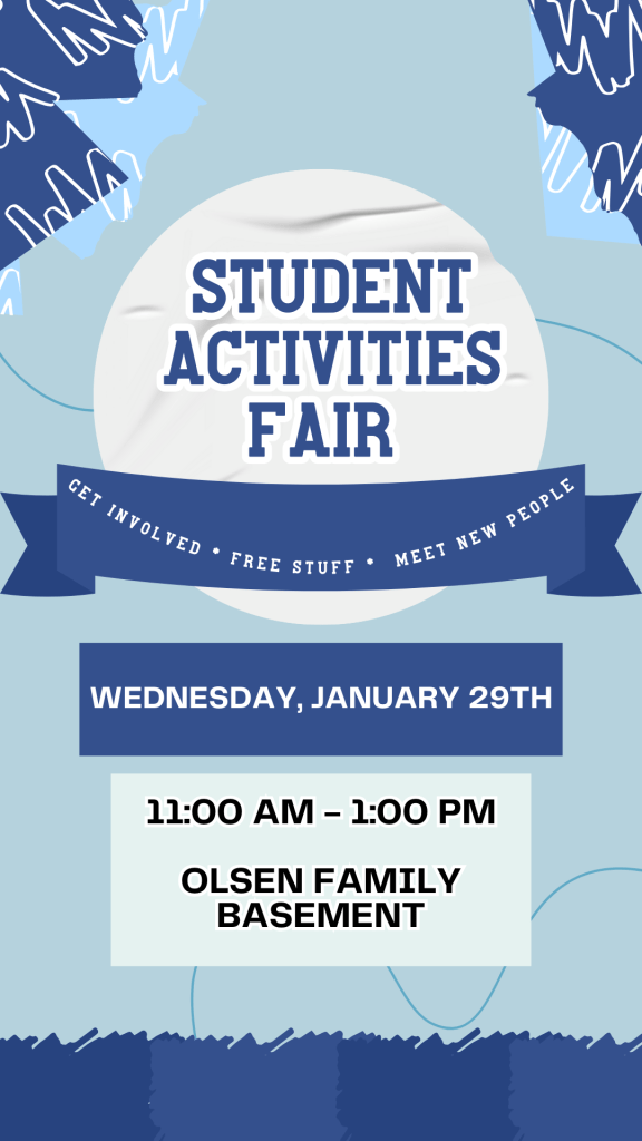And, lastly, the spring activities fair will take place tomorrow, January 29th. Get involved @ RMU! Stop by and meet representatives of our student clubs and organizations.