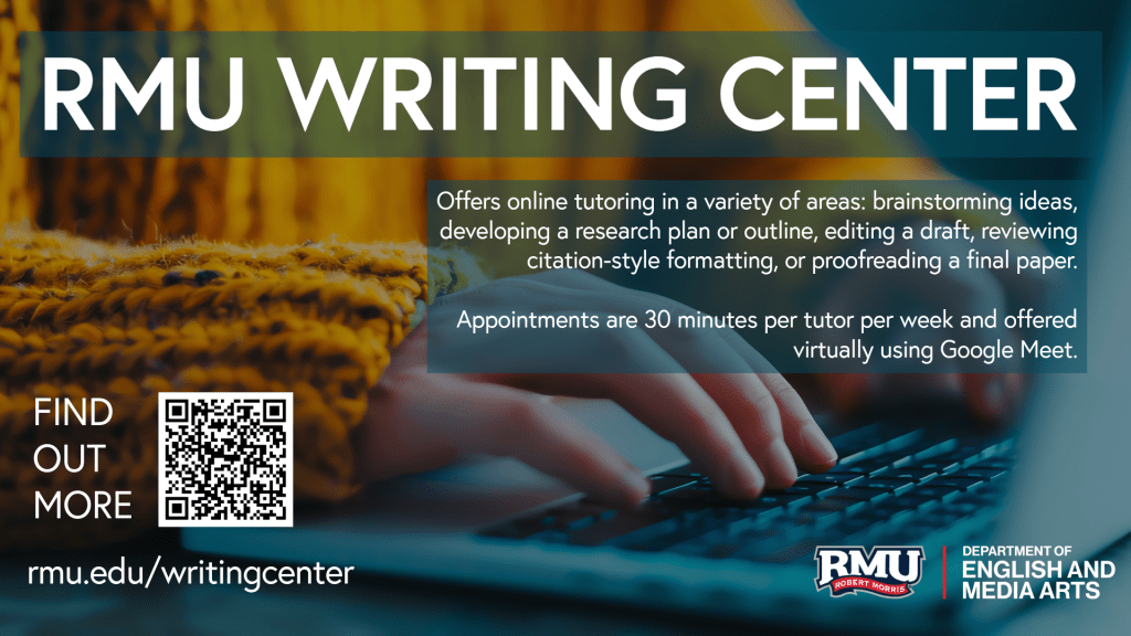 Further information can be found in the attached flier and at the Writing Center website: https://www.rmu.edu/academics/schools/sihss/writing-center