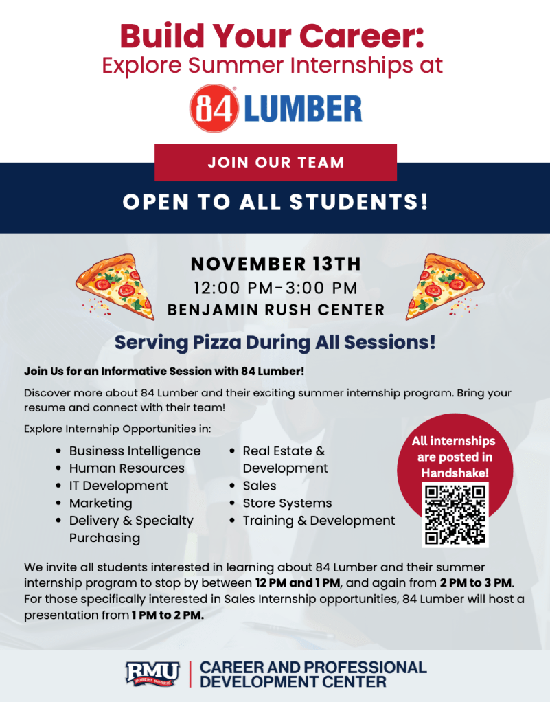 We’re taking RMU’s Career & Internship Fair to the next level on the Arena Floor of the UPMC Events Center. This dynamic setting is your chance to explore opportunities, make connections, and launch your career!
