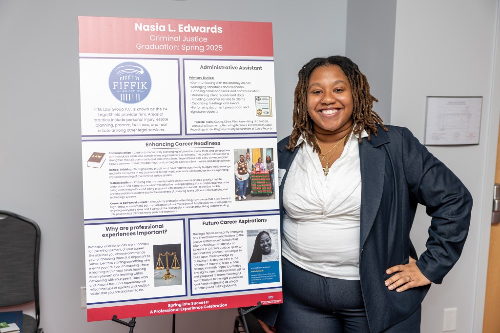 RMU’s Career Center hosted an internship showcase on April 23, 2025 called Spring into Success: A Professional Experience Celebration in the UPMC Events Center. A number of students in the department participated to highlight their amazing internship experiences.